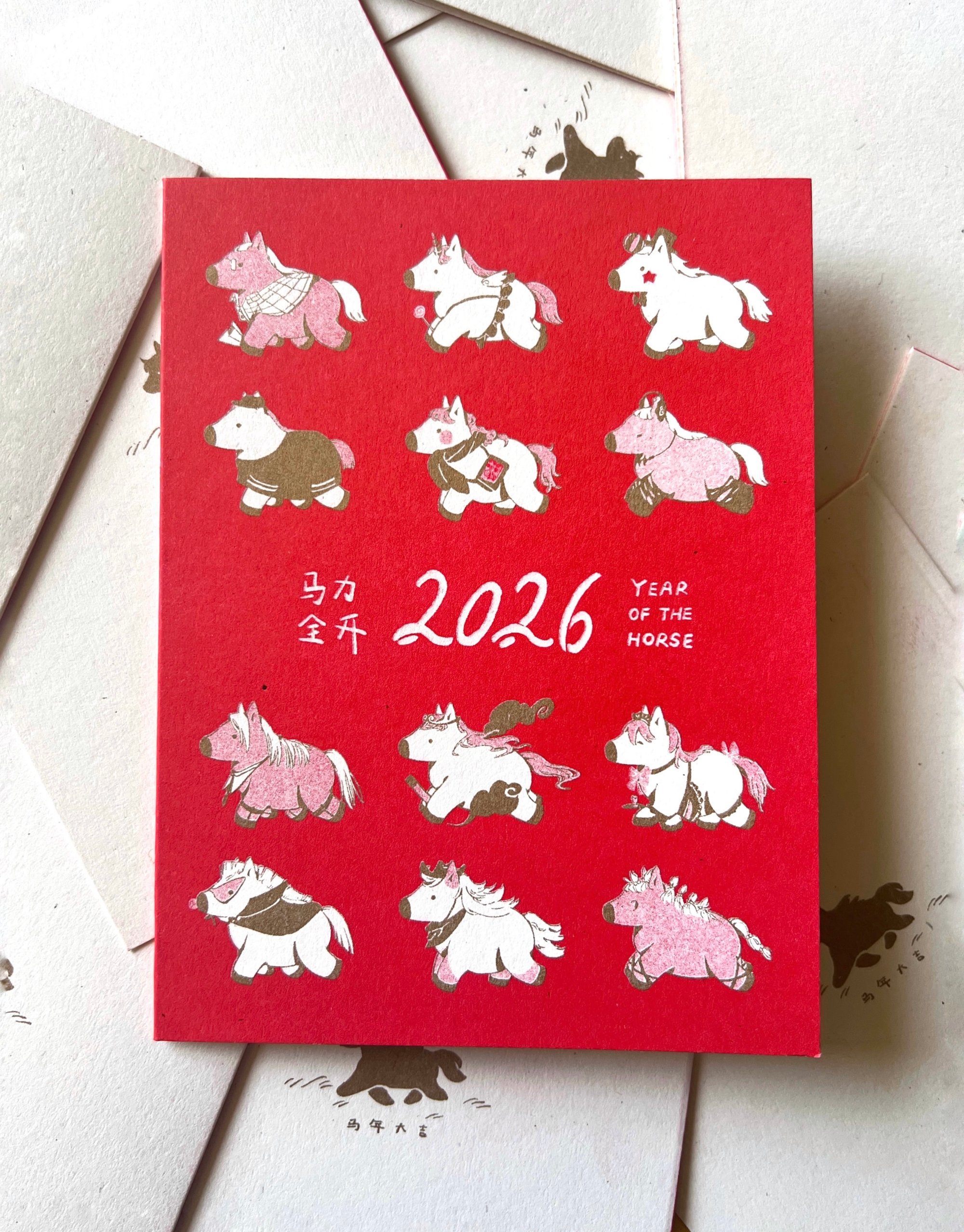 - 2-colors, 3.9" x 5.25" riso greeting card
