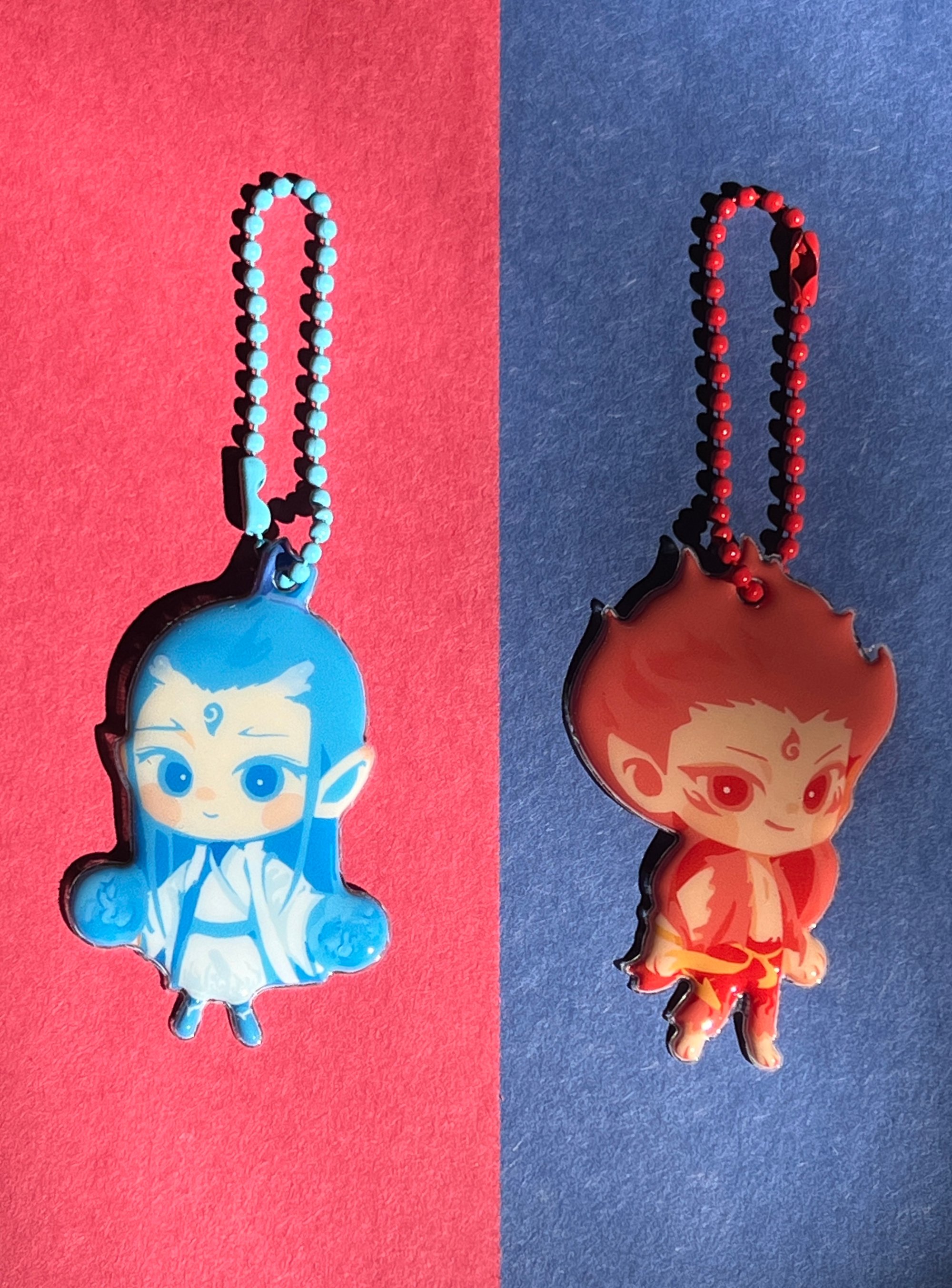 ✩ Red and blue beaded ball chain.